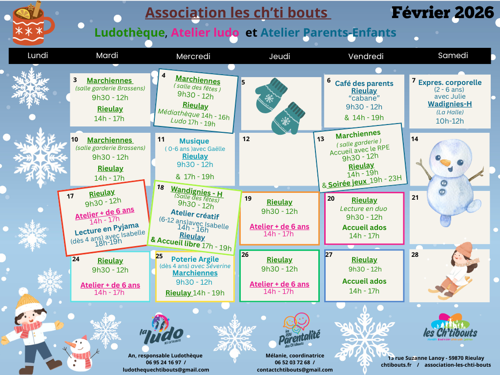 L’association les Ch’tibouts, située à Rieulay, à 15 minutes de Douai, est un collectif de parents, partenaire des communes de Marchiennes, Rieulay et Wandignies Hamage.