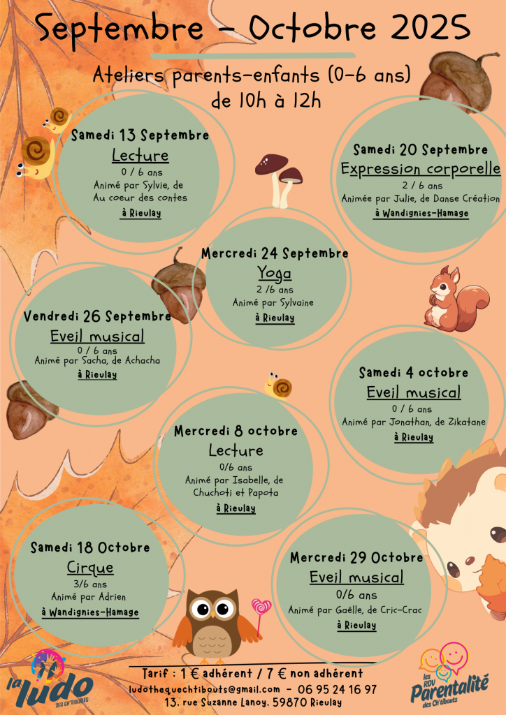 « Les enfants jouent, les parents se posent et causent ! » Un moment de convivialité, de dialogue, d’écoute. Pendant que les enfants jouent et explorent la Ludo, avec une animatrice diplômée, les parents auront la possibilité de poser leurs questions sur l’éducation, le sommeil, les conflits…